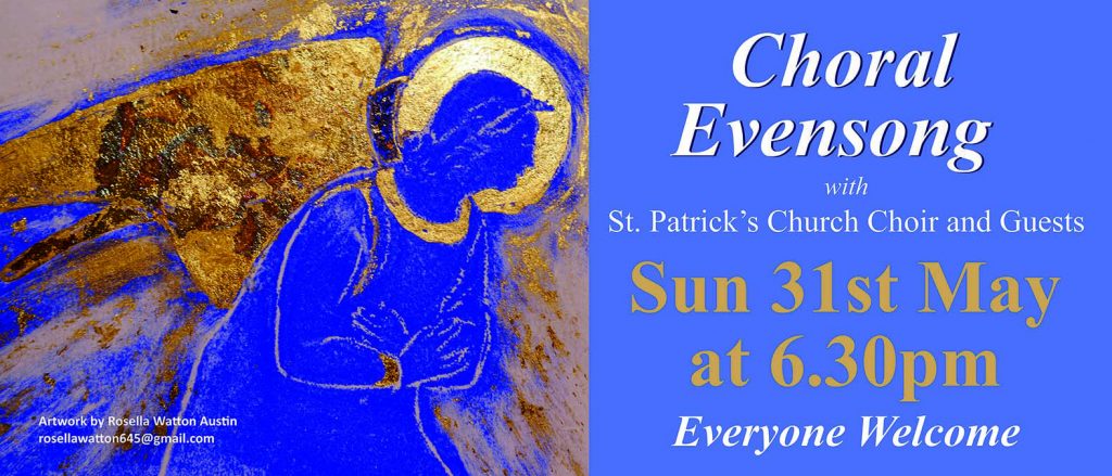 At 6:30 pm on 31st May 2026, St Patrick’s Choir and Guests look forward to presenting a service of Choral Evensong to Almighty God. You are wecome to attend.